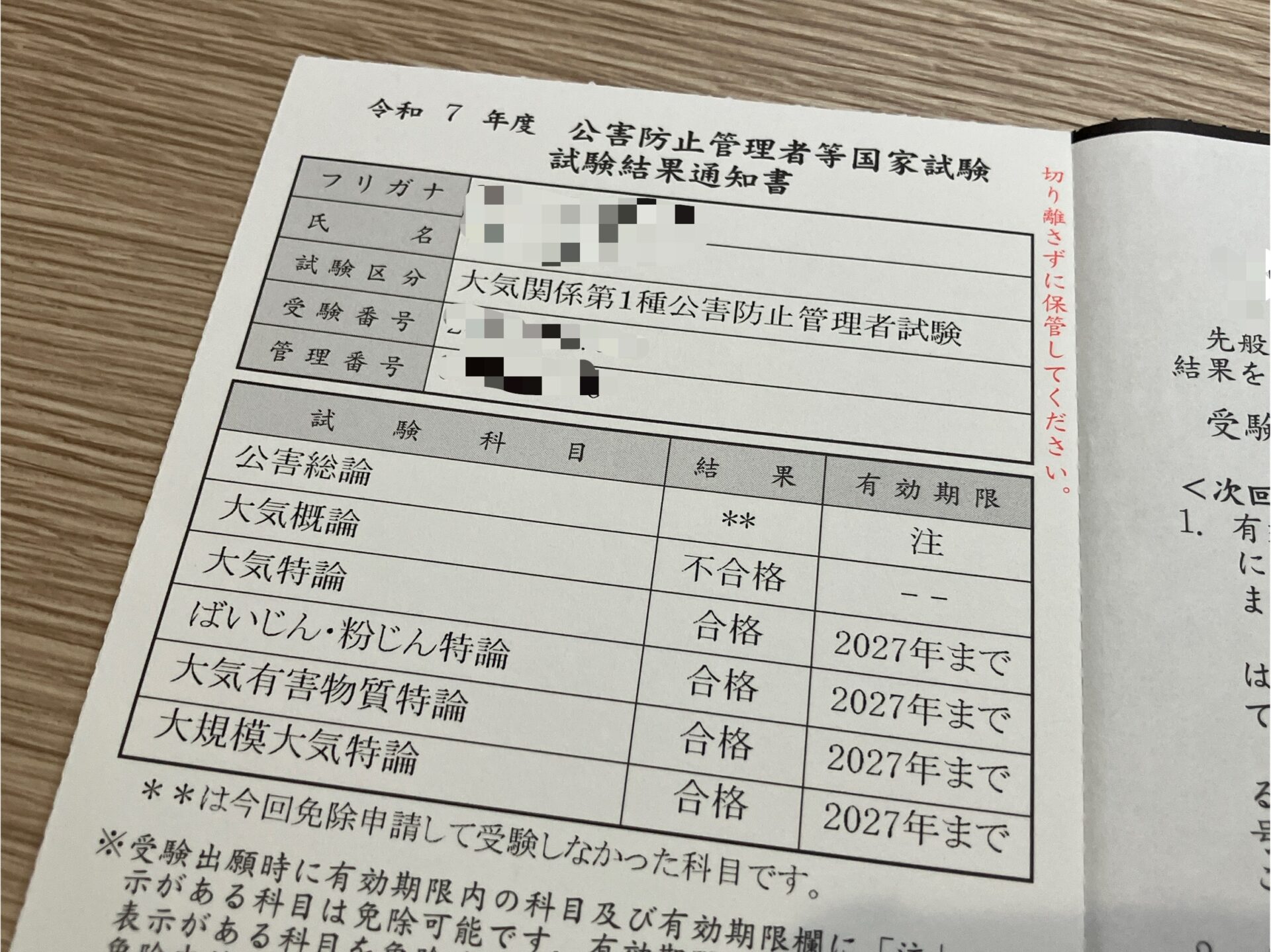 - 10月:大気関係第1種 公害防止管理者→不合格(科目合格4/5)